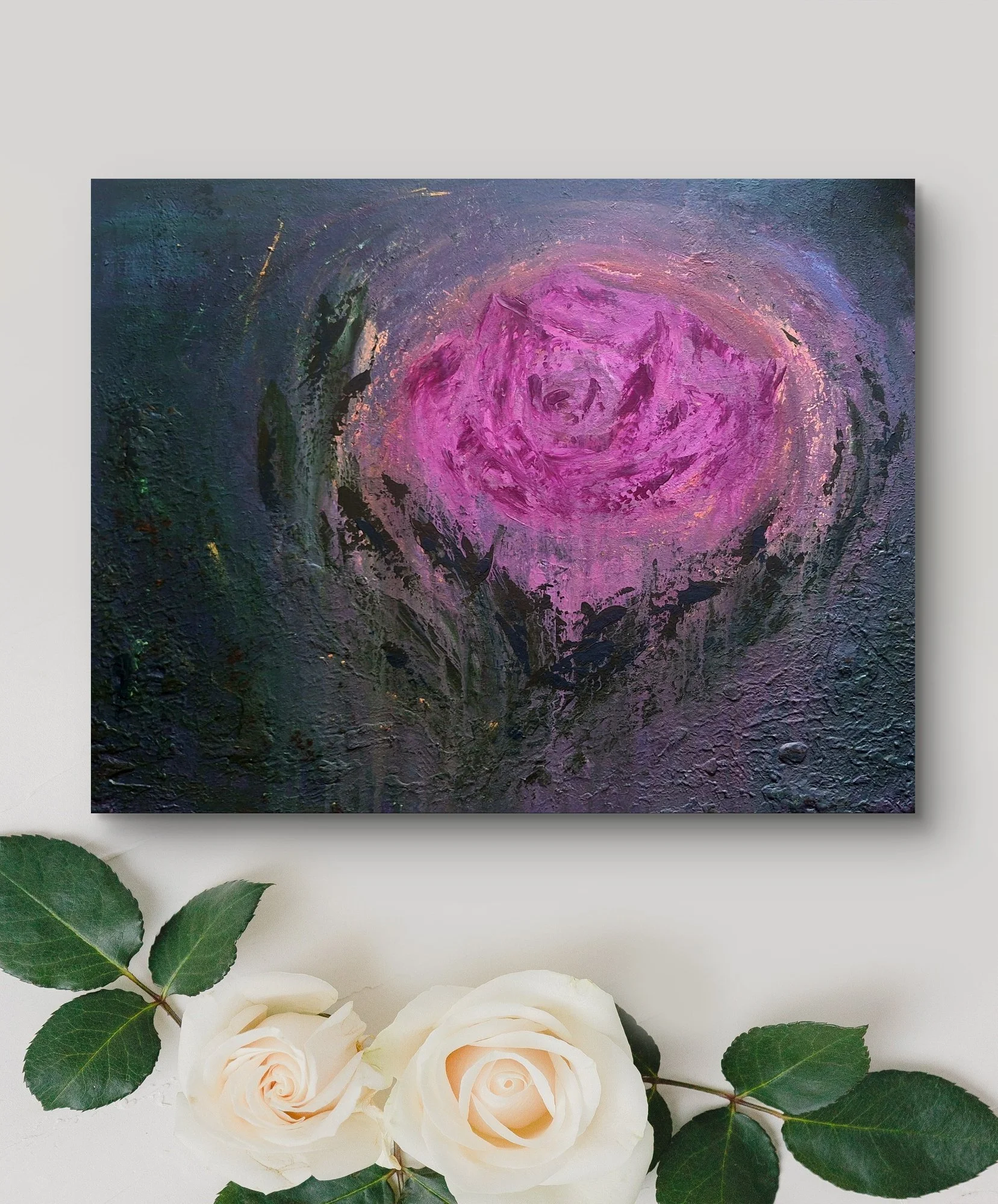 All my pieces are painted on canvas with finished edges — ready to hang, no frame required.